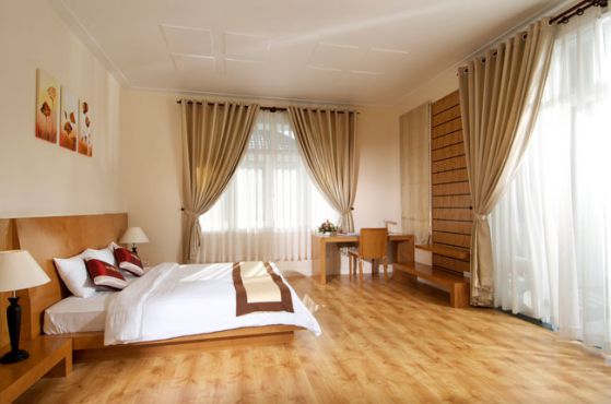 Phòng ngủ là không gian không chỉ đòi hỏi sự sạch sẽ mà còn phải yên tĩnh bởi vì nó có ảnh hưởng đến giấc ngủ và sức khỏe của gia chủ. Phòng ngủ ngoài trang bị những đồ dùng cần thiết như giường, tủ quần áo, bàn trang điểm, bàn học… thì còn được trang trí bởi các đồ nội thất như rèm cửa, sàn gỗ, giấy dán tường…